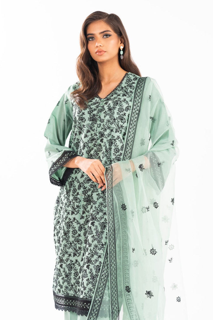Embroidered Lawn Suit With Organza Dupatta